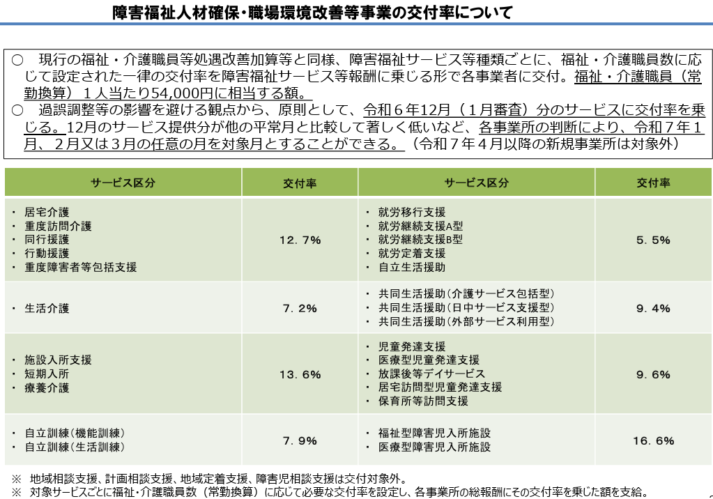福祉・介護職員の業務効率化や人材確保、定着の基盤を構築する事業所に対する支援を目的として、令和6年度報酬改定の追加の施策として、令和6年度補正予算により障害福祉サービス事業所に交付されるものです。